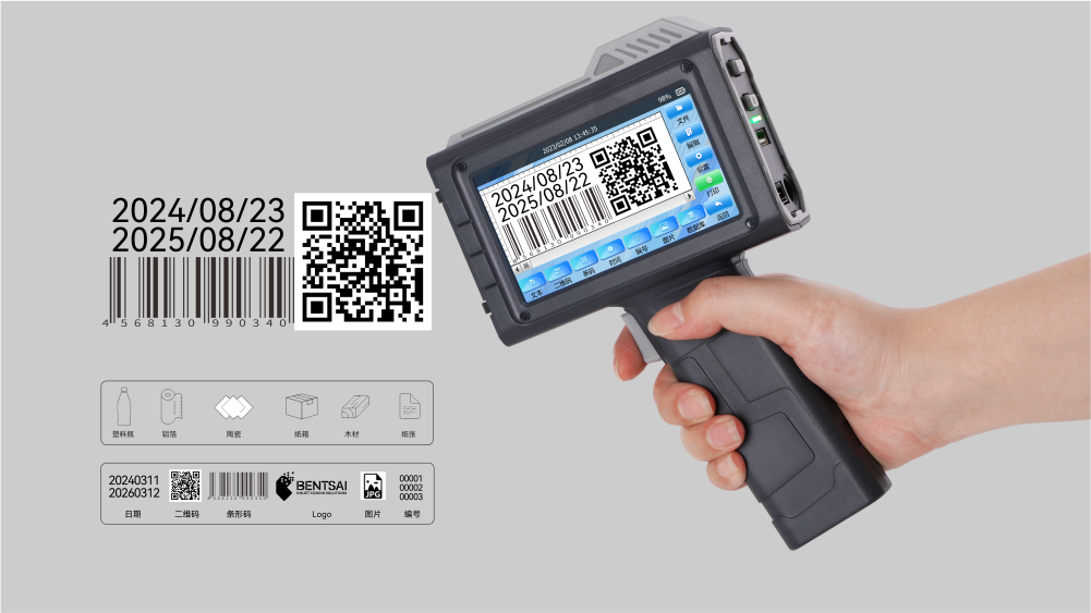 - 喷印内容 文字、数字、符号、二维码、条形码、图片、时间、日期、计数器、数据库等