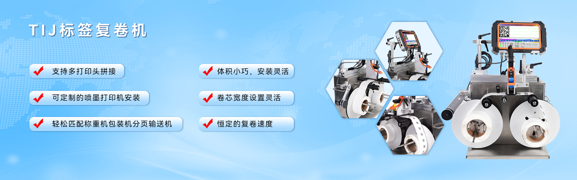 ·体积小巧,安装灵活 ·卷芯宽度设置灵活 ·恒定的复卷速度 ·支持多打印头拼接 ·可定制的喷墨打印机安装 ·轻松匹配称重机包装机分页输送机
