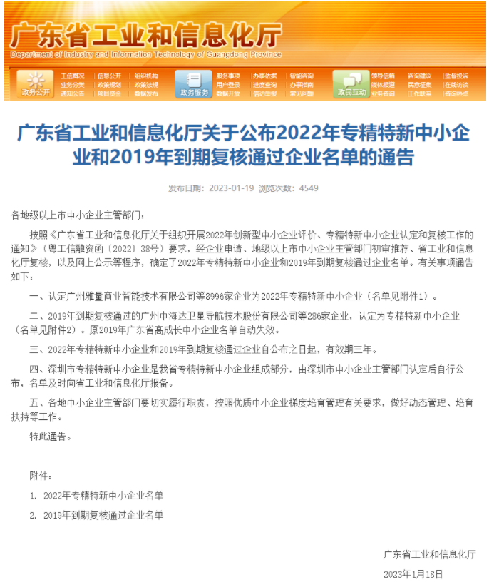珠海太阳成集团122ccvip成功通过2022年广东省“专精特新”中小企业认定